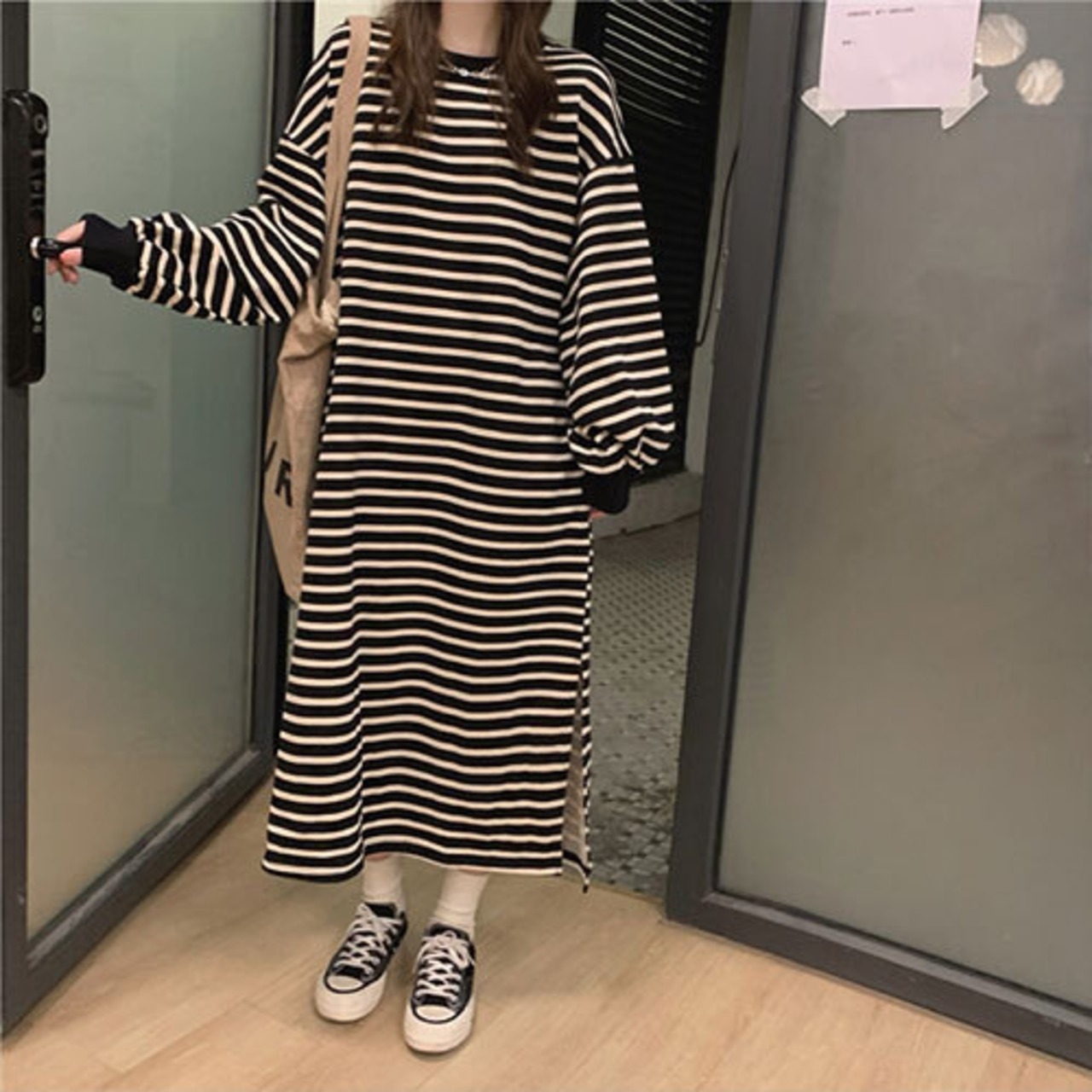 アンティーク調 ルース レイジー風 ストライプス 長袖 ワンピース コート ジャケット アウター ワンピース レディース 秋 冬 半袖 長袖 きれいめ ロング 可愛い かわいい 膝丈 ひざ丈 20代 30代 40代 マキシ タイト レトロ モダン 白 黒 RB-R4-12-NS-SA-047