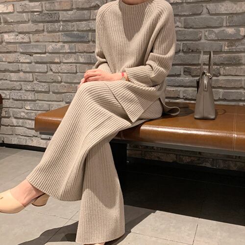 セーター パンツ ニットセットアップ ニットワイドパンツ トレンド カジュアル コート ジャケット アウター ワンピース レディース 秋 冬 半袖 長袖 きれいめ ロング 可愛い かわいい 膝丈 ひざ丈 20代 30代 40代 マキシ タイト レトロ モダン 白 黒 RB-R4-12-NS-SA-063
