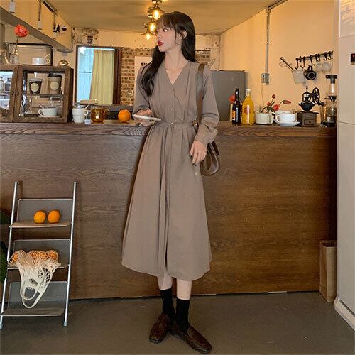 単体ボタン ピュアカラー 長袖 ワンピース 大人気 大きいサイズ レディース Vネックコート ジャケット アウター ワンピース レディース 秋 冬 半袖 長袖 きれいめ ロング 可愛い かわいい 膝丈 ひざ丈 20代 30代 40代 マキシ タイト レトロ モダン 白 黒 RB-R4-12-NS-SA-116