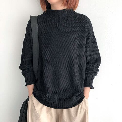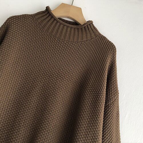 ラウンドヘムビックニットプルオーバー トップス ボリューム袖 ハイネック コート ジャケット アウター ワンピース レディース 秋 冬 半袖 長袖 きれいめ ロング 可愛い かわいい 膝丈 ひざ丈 20代 30代 40代 マキシ タイト レトロ モダン 白 黒 RB-R5-01-NS-SA-001