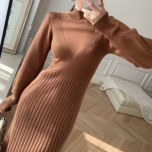 ニットワンピース 厚手 スリム 着痩せ ハイネック ボリューム袖 カットソー 無地 セクシー トップス ボリューム袖 ハイネック コート ジャケット アウター ワンピース レディース 秋 冬 半袖 長袖 きれいめ ロング 可愛い かわいい 膝丈 ひざ丈 20代 30代 40代 マキシ タイト レトロ モダン 白 黒 RB-R5-01-NS-SA-038