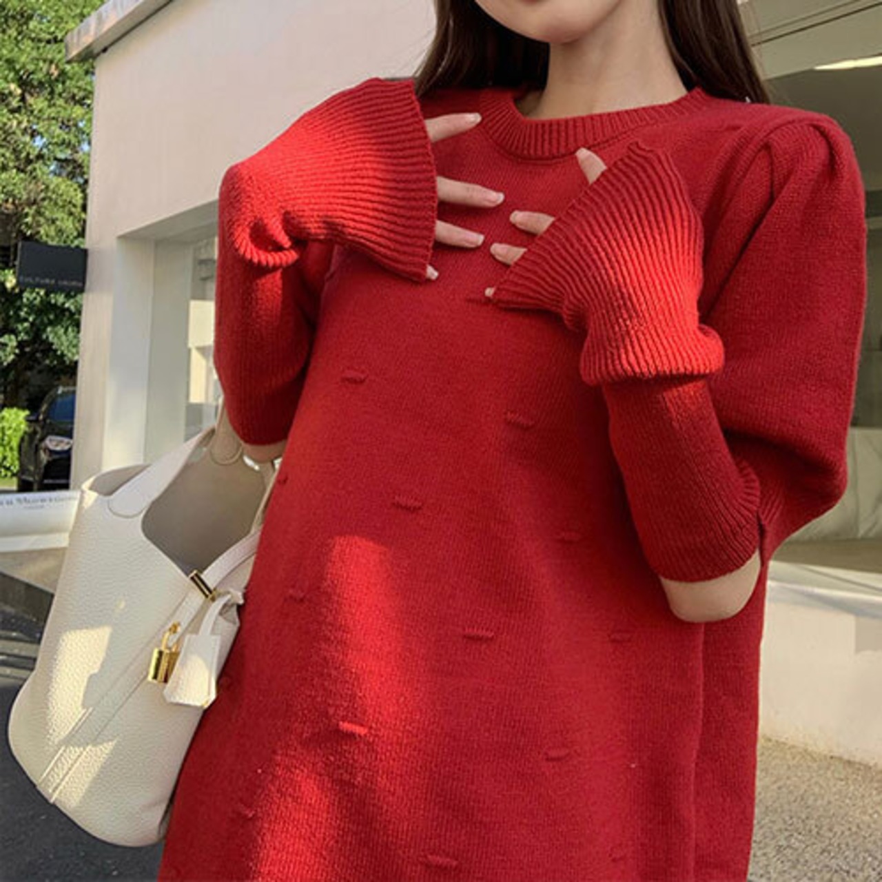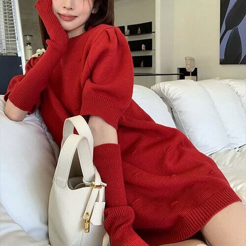 韓国風レディース服 お出かけ エレガント ニット ワンピース トップス ワンピース レディース 春 半袖 長袖 きれいめ ロング 可愛い かわいい 膝丈 ひざ丈 20代 30代 40代 マキシ タイト レトロ モダン 白 黒 2023 RB-R5-02-NS-SA-055