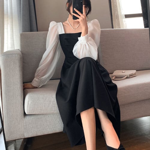 韓国風レディース服 お出かけ エレガント オシャレ ワンピース トップス ワンピース レディース 春 半袖 長袖 きれいめ ロング 可愛い かわいい 膝丈 ひざ丈 20代 30代 40代 マキシ タイト レトロ モダン 白 黒 2023 RB-R5-02-NS-SA-058