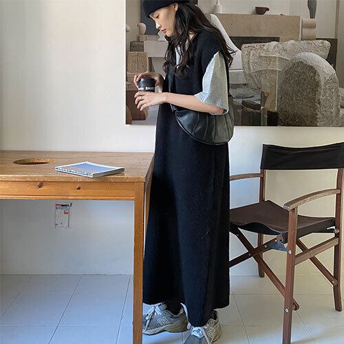 韓国風レディース服 お出かけ エレガント ニット ワンピース トップス ワンピース レディース 春 半袖 長袖 きれいめ ロング 可愛い かわいい 膝丈 ひざ丈 20代 30代 40代 マキシ タイト レトロ モダン 白 黒 2023 RB-R5-02-NS-SA-066