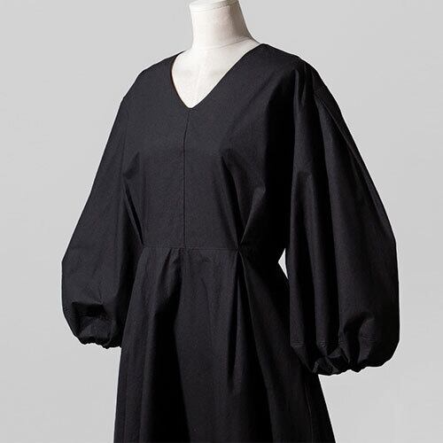 着痩せ お洒落 ボリューム袖 ゆったり プルオーバー Vネック ロング ワンピース 体型カバー ビッグシルエット トップス ワンピース レディース 春 夏 半袖 長袖 きれいめ ロング 可愛い かわいい 膝丈 ひざ丈 20代 30代 40代 マキシ タイト レトロ モダン 白 黒 2023 RB-R5-03-NS-SA-002