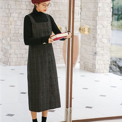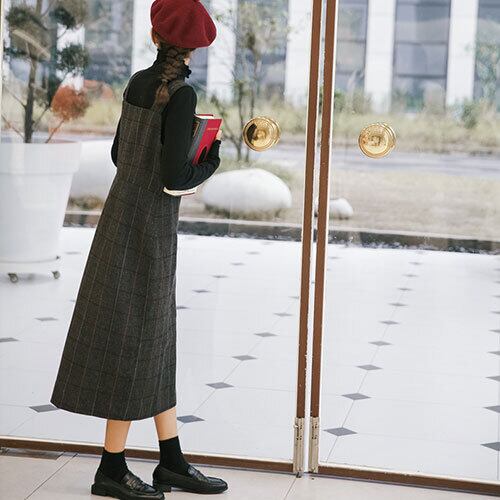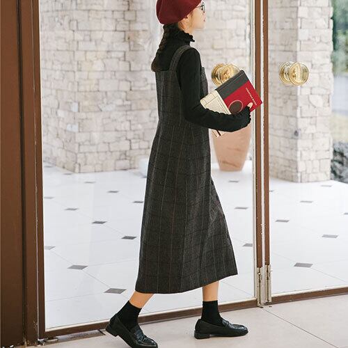 韓国 ファッション レディース ジャンパースカート ワンピース チェック ロング ウール ミモレ丈 ゆったり レトロ 大人可愛い トップス ワンピース レディース 春 夏 半袖 長袖 きれいめ ロング 可愛い かわいい 膝丈 ひざ丈 20代 30代 40代 マキシ タイト レトロ モダン 白 黒 2023 RB-R5-03-NS-SA-012