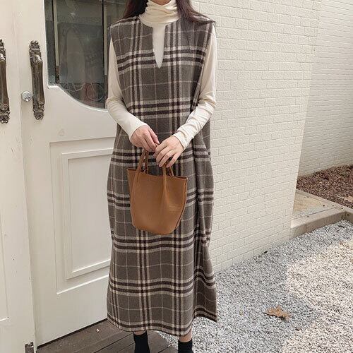 お洒落 美シルエット Vネック チェック ロング丈 ジャンパースカート ノースリーブ ロングワンピ サロペット トップス ワンピース レディース 春 夏 半袖 長袖 きれいめ ロング 可愛い かわいい 膝丈 ひざ丈 20代 30代 40代 マキシ タイト レトロ モダン 白 黒 2023 RB-R5-03-NS-SA-014