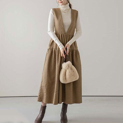 深Vネック ジャンパースカート Aライン フレア ワンピース ミモレ丈 レイヤード ミディ丈 カジュアル トップス ワンピース レディース 春 夏 半袖 長袖 きれいめ ロング 可愛い かわいい 膝丈 ひざ丈 20代 30代 40代 マキシ タイト レトロ モダン 白 黒 2023 RB-R5-03-NS-SA-031