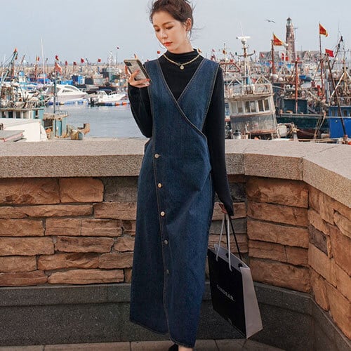 Vネック デニム ワンピース ロングワンピース レディース おすすめ おしゃれ デニム ジャンパースカート マキシワンピース トップス ワンピース レディース 春 夏 半袖 長袖 きれいめ ロング 可愛い かわいい 膝丈 ひざ丈 20代 30代 40代 マキシ タイト レトロ モダン 白 黒 2023 RB-R5-03-NS-SA-060