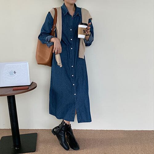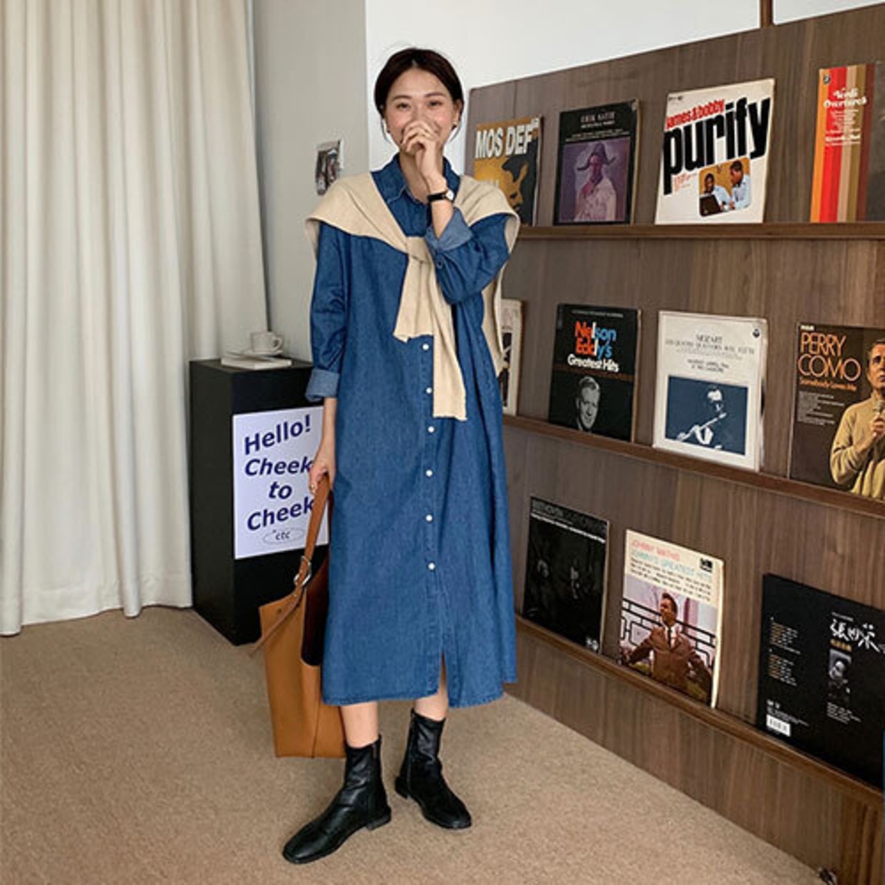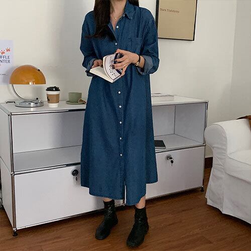 ワンピース デニムワンピース シャツワンピ 韓国風 レディース服 ロング丈 着回し トップス ワンピース レディース 春 夏 半袖 長袖 きれいめ ロング 可愛い かわいい 膝丈 ひざ丈 20代 30代 40代 マキシ タイト レトロ モダン 白 黒 2023 デニム デニムワンピース RB-R5-04-NS-SA-009