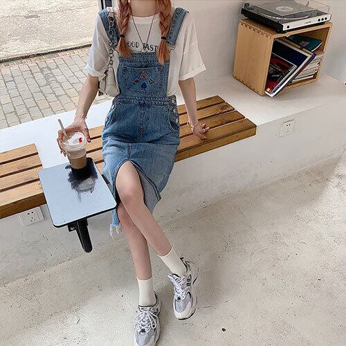 デニム ストラップドレス 女 春秋 新しいデザイン 若くなる 着やせ ワンピース 小さい体 気質 スプリットスカート トップス ワンピース レディース 春 夏 半袖 長袖 きれいめ ロング 可愛い かわいい 膝丈 ひざ丈 20代 30代 40代 マキシ タイト レトロ モダン 白 黒 2023 デニム デニムワンピース RB-R5-04-NS-SA-014