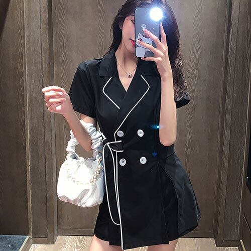 韓国ファッション スリム 半袖 スーツ 2点セット ワンピース ショートパンツ トップス ワンピース レディース 春 夏 半袖 長袖 きれいめ ロング 可愛い かわいい 膝丈 ひざ丈 20代 30代 40代 マキシ タイト レトロ モダン 白 黒 2023 デニム デニムワンピース RB-R5-04-NS-SA-032