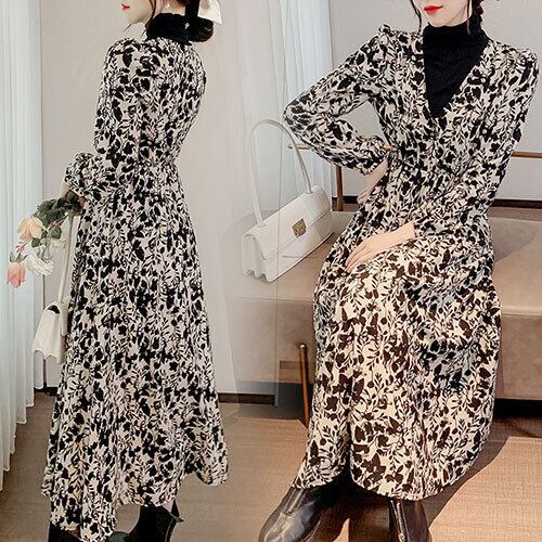 プラス小さなデザイン ロングスカート フェイク2ピース タートルネック ボトムス Vネック トップス ワンピース レディース 春 夏 半袖 長袖 きれいめ ロング 可愛い かわいい 膝丈 ひざ丈 20代 30代 40代 マキシ タイト レトロ モダン 白 黒 2023 デニム デニムワンピース RB-R5-04-NS-SA-071