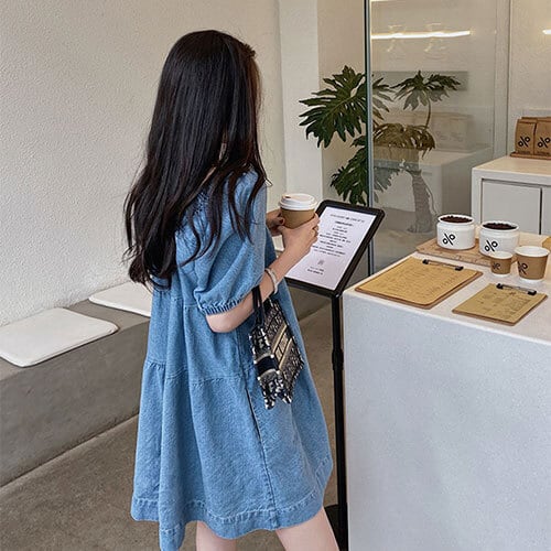 パフスリーブ sweet系 百掛け ゆったりする オフショルダー デニム トップス ワンピース レディース 春 夏 半袖 長袖 きれいめ ロング 可愛い かわいい 膝丈 ひざ丈 20代 30代 40代 マキシ タイト レトロ モダン 白 黒 2023 デニム デニムワンピース RB-R5-04-NS-SA-075