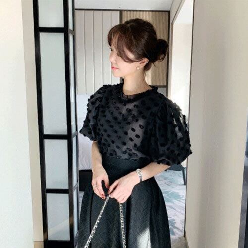 2023年夏新作 ブラウス パフスリーブ シャツ 気質 エレガント 韓国風 Sweet トップス ワンピース レディース 春 夏 半袖 長袖 きれいめ ロング 可愛い かわいい 膝丈 ひざ丈 20代 30代 40代 マキシ タイト レトロ モダン 白 黒 2023 RB-R5-05-NS-SA-014