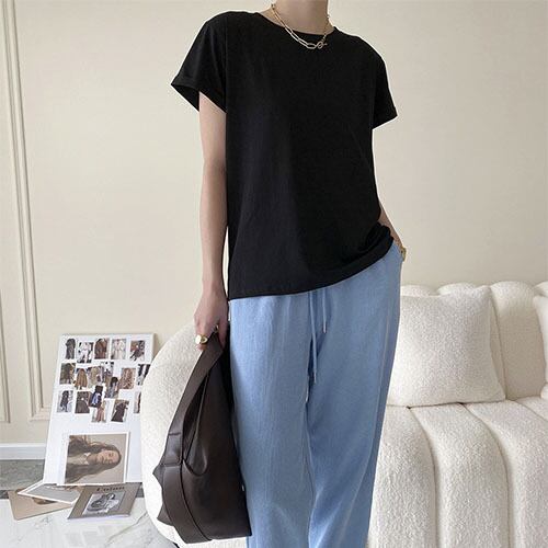 2023年夏新作 tシャツ Tシャツ 人気シャツ トップス レディース 半袖 着回し ラウンドネック トップス ワンピース レディース 春 夏 半袖 長袖 きれいめ ロング 可愛い かわいい 膝丈 ひざ丈 20代 30代 40代 マキシ タイト レトロ モダン 白 黒 2023 RB-R5-05-NS-SA-087