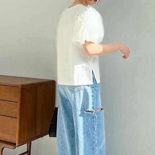 2023年夏新作 tシャツ ins超人気 ラウンドネック Tシャツ トップス レディース ランタンスリープ トップス ワンピース レディース 春 夏 半袖 長袖 きれいめ ロング 可愛い かわいい 膝丈 ひざ丈 20代 30代 40代 マキシ タイト レトロ モダン 白 黒 2023 RB-R5-05-NS-SA-027