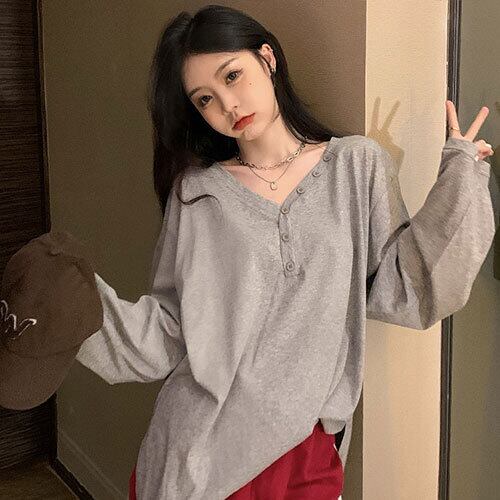 2023春新作 tシャツ 長袖シャツ トップス レディース カジュアル Vネック ビッグシルエット トップス ワンピース レディース 春 夏 半袖 長袖 きれいめ ロング 可愛い かわいい 膝丈 ひざ丈 20代 30代 40代 マキシ タイト レトロ モダン 白 黒 2023 RB-R5-05-NS-SA-067