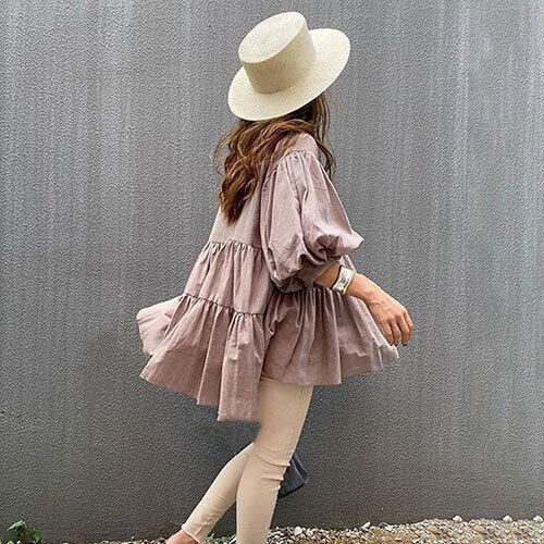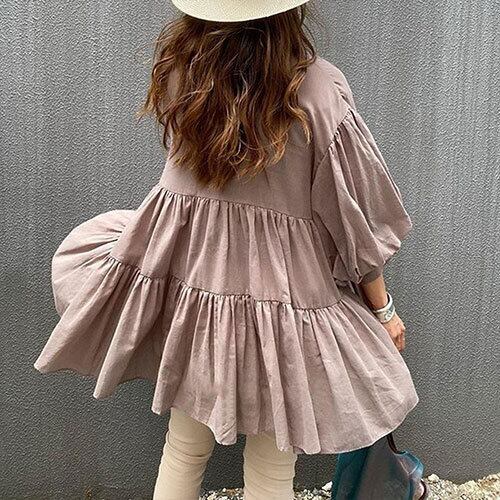 ティアードトップス 長袖Tシャツ パフスリーブ 可愛いチュニック トップス ワンピース レディース 春 夏 半袖 長袖 きれいめ ロング 可愛い かわいい 膝丈 ひざ丈 20代 30代 40代 マキシ タイト レトロ モダン 白 黒 2023 RB-R5-06-NS-SA-013