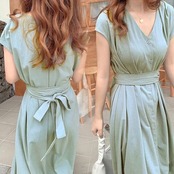 フレンチスリーブワンピース 大人レディな印象のタック入り リネン風ワンピース トップス ワンピース レディース 春 夏 半袖 長袖 きれいめ ロング 可愛い かわいい 膝丈 ひざ丈 20代 30代 40代 マキシ タイト レトロ モダン 白 黒 2023 RB-R5-06-NS-SA-014