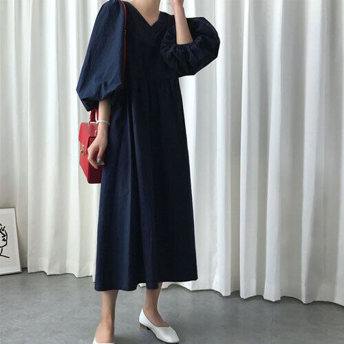 2023新作 リラックス感 ロングワンピース 夏物 パフスリーブ ワンピース トップス ワンピース レディース 春 夏 半袖 長袖 きれいめ ロング 可愛い かわいい 膝丈 ひざ丈 20代 30代 40代 マキシ タイト レトロ モダン 白 黒 2023 RB-R5-06-NS-SA-016