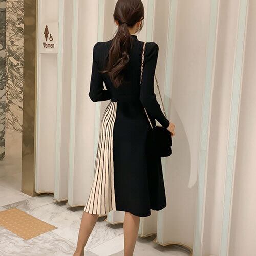 ワンピース ニットワンピース スリット プリーツ切り替え プリーツスカート トップス ワンピース レディース 春 夏 半袖 長袖 きれいめ ロング 可愛い かわいい 膝丈 ひざ丈 20代 30代 40代 マキシ タイト レトロ モダン 白 黒 2023 RB-R5-06-NS-SA-017
