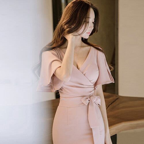 フレア袖ワンピ リボン カシュクール 2023春夏新作ワンピース トップス ワンピース レディース 春 夏 半袖 長袖 きれいめ ロング 可愛い かわいい 膝丈 ひざ丈 20代 30代 40代 マキシ タイト レトロ モダン 白 黒 2023 RB-R5-06-NS-SA-021