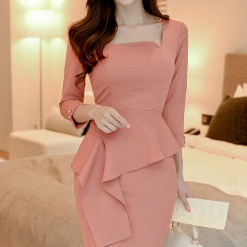 無地ワンピース 7分袖ワンピース フリル ドレス ワンピース トップス ワンピース レディース 春 夏 半袖 長袖 きれいめ ロング 可愛い かわいい 膝丈 ひざ丈 20代 30代 40代 マキシ タイト レトロ モダン 白 黒 2023 RB-R5-06-NS-SA-025