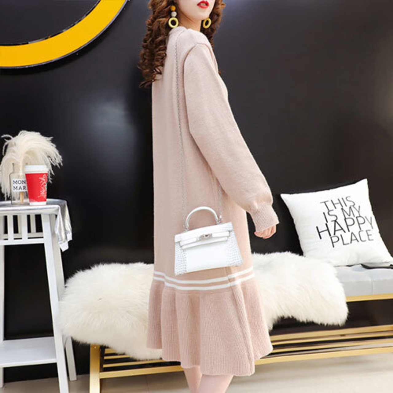 ニット ワンピース ゆったり 裾フリル 韓国ファッション セーター トップス ワンピース レディース 春 夏 半袖 長袖 きれいめ ロング 可愛い かわいい 膝丈 ひざ丈 20代 30代 40代 マキシ タイト レトロ モダン 白 黒 2023 RB-R5-06-NS-SA-044