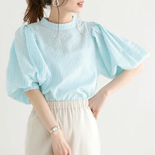 綺麗め お洒落 可愛い ぽわん袖 ボリューム袖 エンボス加工 ブラウス バルーンスリーブ ゆったり プルオーバー トップス ワンピース レディース 春 夏 半袖 長袖 きれいめ ロング 可愛い かわいい 膝丈 ひざ丈 20代 30代 40代 マキシ タイト レトロ モダン 白 黒 2023 RB-R5-08-NS-SA-006