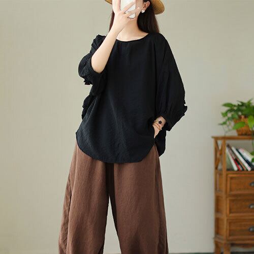 2023年夏新作 レディース服 ゆったり カジュアル トップス 中袖 ブラウス/ワイシャツ 5色展開 トップス ワンピース レディース 春 夏 半袖 長袖 きれいめ ロング 可愛い かわいい 膝丈 ひざ丈 20代 30代 40代 マキシ タイト レトロ モダン 白 黒 2023 RB-R5-08-NS-SA-012