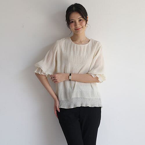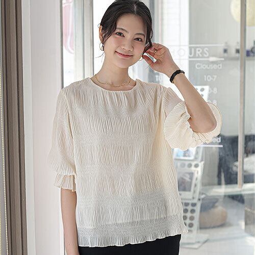 綺麗め 可愛い 薄手 透け感 ランダムプリーツ シアーシースルー 半袖 ブラウス 袖口ゴム フリル 無地 羽織 オフィス トップス ワンピース レディース 春 夏 半袖 長袖 きれいめ ロング 可愛い かわいい 膝丈 ひざ丈 20代 30代 40代 マキシ タイト レトロ モダン 白 黒 2023 RB-R5-08-NS-SA-027