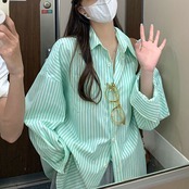 ストライプ シャツ ブラウス 体型カバー羽織 トップス ワンピース レディース 春 夏 半袖 長袖 きれいめ ロング 可愛い かわいい 膝丈 ひざ丈 20代 30代 40代 マキシ タイト レトロ モダン 白 黒 2023 RB-R5-08-NS-SA-034