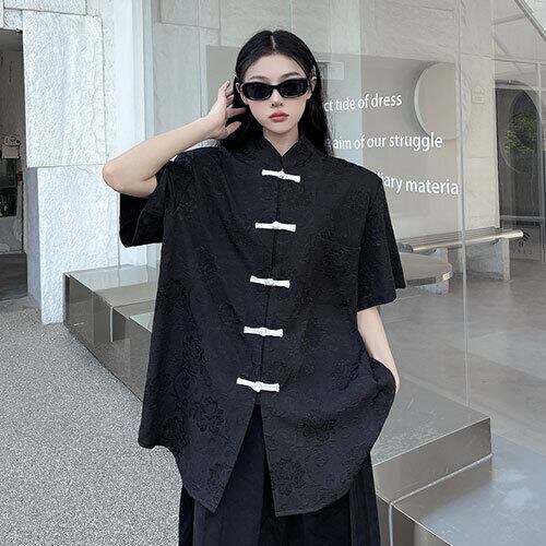 トップス シャツ 中国服 チャイナ服 半袖 カジュアルシャツ カンフーシャツ レディース トップス ワンピース レディース 春 夏 半袖 長袖 きれいめ ロング 可愛い かわいい 膝丈 ひざ丈 20代 30代 40代 マキシ タイト レトロ モダン 白 黒 2023 RB-R5-08-NS-SA-037