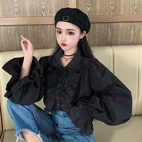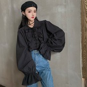 韓国ファッション 春 新品 フリル 巾着 シャツ ホーンスリーブ レトロ 個性 減齢 sweet系 可愛い トップス ワンピース レディース 春 夏 半袖 長袖 きれいめ ロング 可愛い かわいい 膝丈 ひざ丈 20代 30代 40代 マキシ タイト レトロ モダン 白 黒 2023 RB-R5-08-NS-SA-048