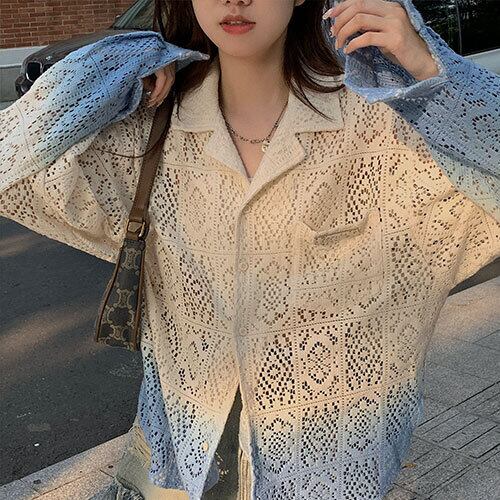 2023年夏秋INS 新作 合わせやすい ゆったり 長袖 透かし彫り シャツ/ブラウス トップス ワンピース レディース 春 夏 半袖 長袖 きれいめ ロング 可愛い かわいい 膝丈 ひざ丈 20代 30代 40代 マキシ タイト レトロ モダン 白 黒 2023 RB-R5-08-NS-SA-094