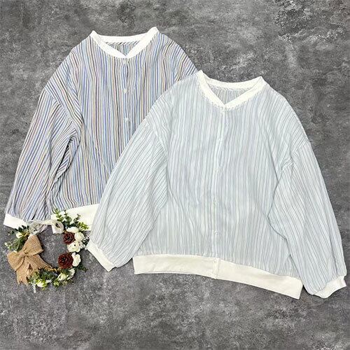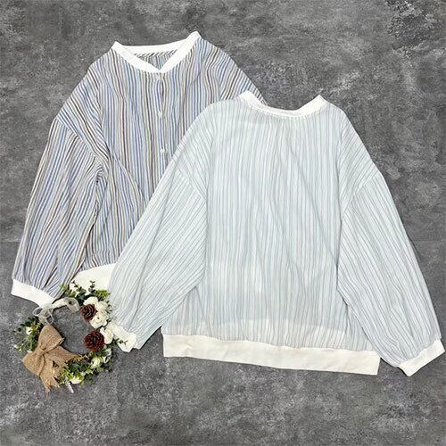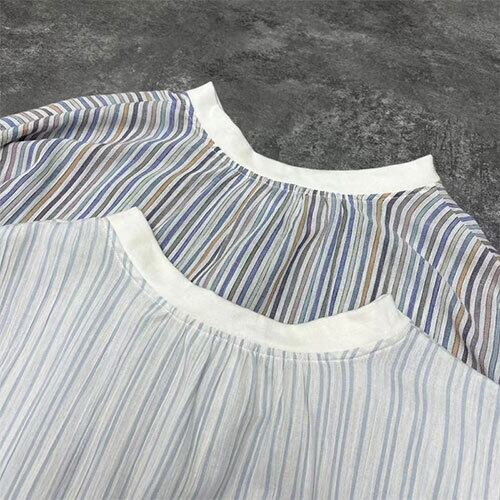 2023秋新作 トップス シャツ ウンドネック ストライプ 長袖 着回し 体型カバー レディース トップス ワンピース レディース 秋 半袖 長袖 きれいめ ロング 可愛い かわいい 膝丈 ひざ丈 20代 30代 40代 マキシ タイト レトロ モダン 白 黒 2023 RB-R5-09-NS-SA-014