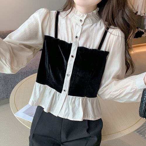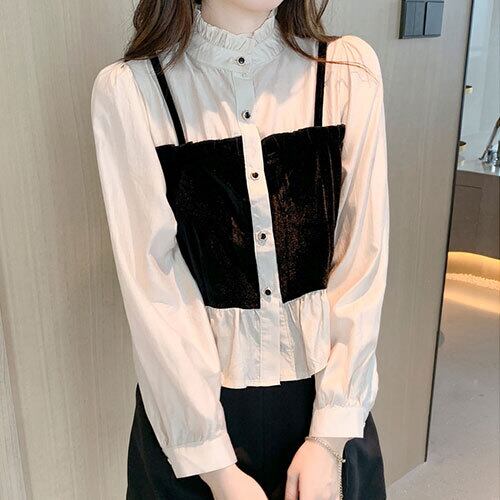 2023秋新作 トップス シャツ スタンドカラー パワション 着回し 体型カバー レディース トップス ワンピース レディース 秋 半袖 長袖 きれいめ ロング 可愛い かわいい 膝丈 ひざ丈 20代 30代 40代 マキシ タイト レトロ モダン 白 黒 2023 RB-R5-09-NS-SA-019