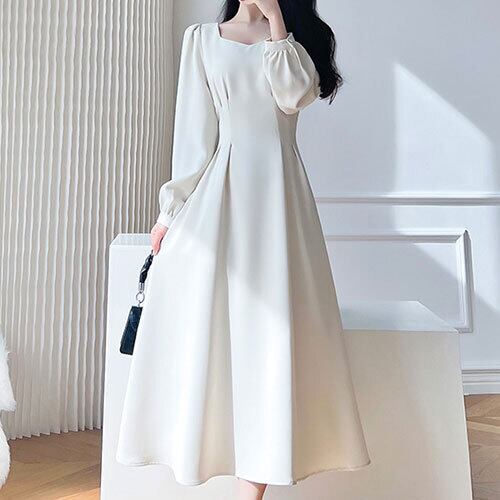 2023秋新作 ワンピース パワション スクエアネック 長袖 体型カバー 上品 レディース トップス ワンピース レディース 秋 半袖 長袖 きれいめ ロング 可愛い かわいい 膝丈 ひざ丈 20代 30代 40代 マキシ タイト レトロ モダン 白 黒 2023 RB-R5-09-NS-SA-021