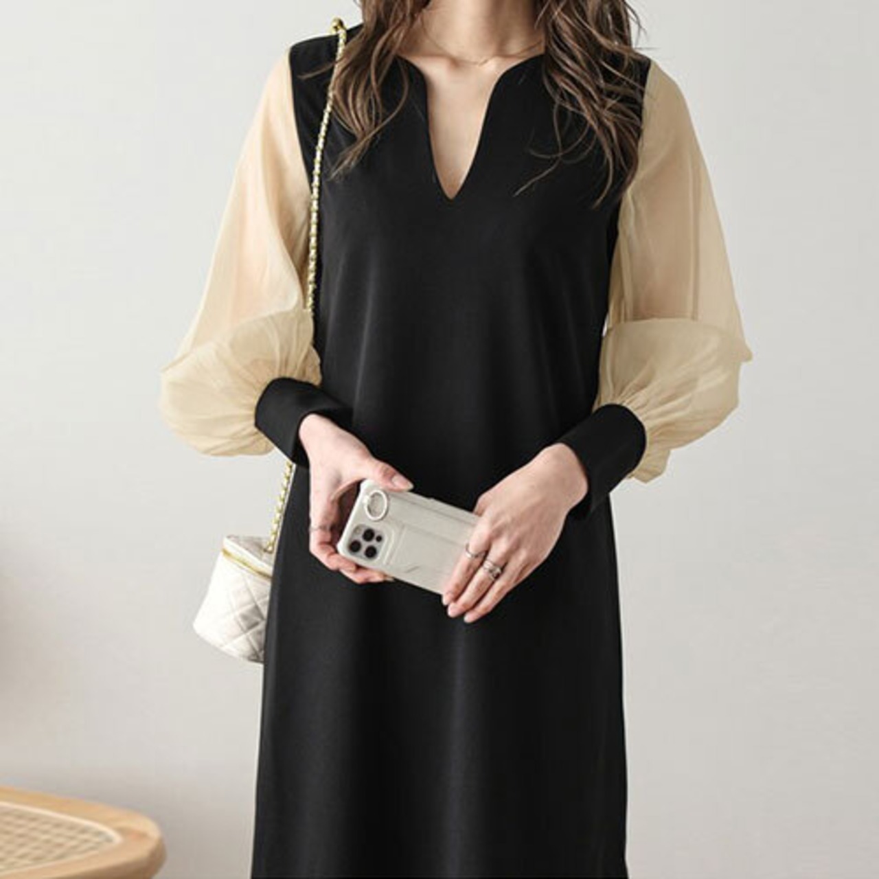 2023年秋新作 ワンピース Vネック ロング丈ワンピース レディース 気質 オシャレ 着回し トップス ワンピース レディース 秋 半袖 長袖 きれいめ ロング 可愛い かわいい 膝丈 ひざ丈 20代 30代 40代 マキシ タイト レトロ モダン 白 黒 2023 RB-R5-09-NS-SA-057