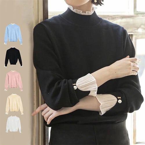 上品 きれいめ 手触り良く ニット セーター ハイネック タートルネック トップス レース パールモチーフ トップス ワンピース レディース 秋 冬 半袖 長袖 きれいめ ロング 可愛い かわいい 膝丈 ひざ丈 20代 30代 40代 マキシ タイト レトロ モダン 白 黒 2023 RB-R5-10-NS-SA-051