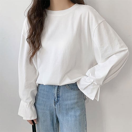 綺麗め お洒落 ゆったり 楽ちん フリル袖 長袖Tシャツ ブラウス カットソー ボリューム感 ボリューム袖 体型カバー トップス ワンピース レディース 秋 冬 半袖 長袖 きれいめ ロング 可愛い かわいい 膝丈 ひざ丈 20代 30代 40代 マキシ タイト レトロ モダン 白 黒 2023 RB-R5-10-NS-SA-055