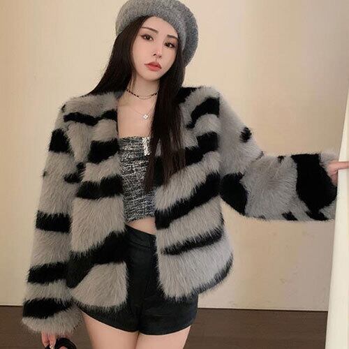 オシャレ度UP INSスタイル ゼブラ柄 毛皮コート 気質 毛羽立ちの上着 コート 洗練された 新作 トップス アウター ボトムス レディース 秋 冬 半袖 長袖 きれいめ ロング 可愛い かわいい 膝丈 ひざ丈 20代 30代 40代 マキシ タイト レトロ モダン 白 黒 2023 RB-R5-12-NS-SA-013