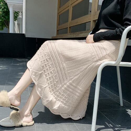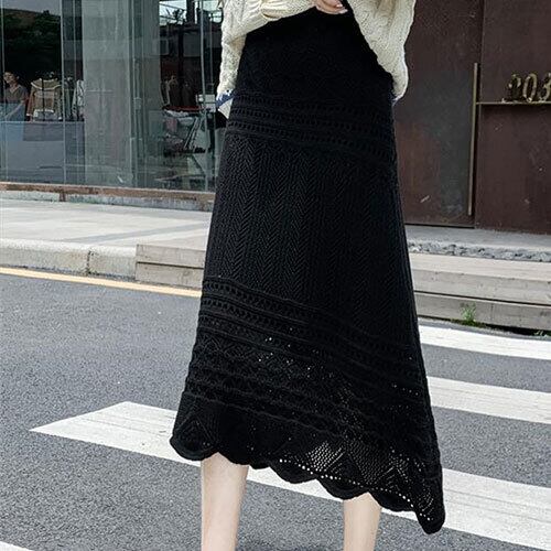 通勤する 秋 冬 新品 韓国版 ニット スカート 透かし彫り 気質 大人気 個性 エレガント おしゃれな トップス アウター ボトムス レディース 秋 冬 半袖 長袖 きれいめ ロング 可愛い かわいい 膝丈 ひざ丈 20代 30代 40代 マキシ タイト レトロ モダン 白 黒 2023 RB-R5-12-NS-SA-110