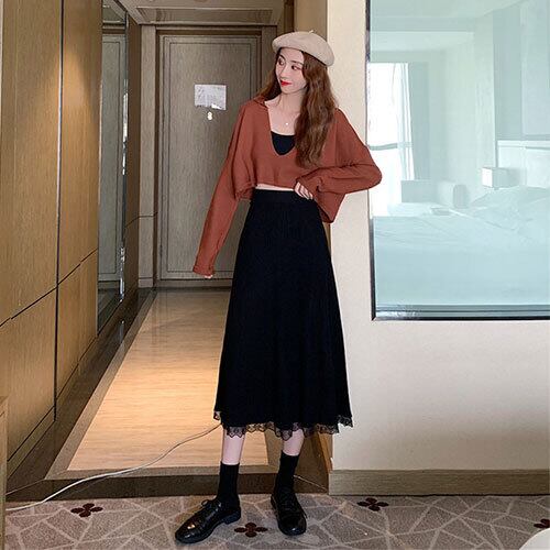 通勤する 秋 冬 ニット スカート ハイウエスト スリム レースエッジ 中・長セクション デザインセンス トップス アウター ボトムス レディース 秋 冬 半袖 長袖 きれいめ ロング 可愛い かわいい 膝丈 ひざ丈 20代 30代 40代 マキシ タイト レトロ モダン 白 黒 2023 RB-R5-12-NS-SA-128