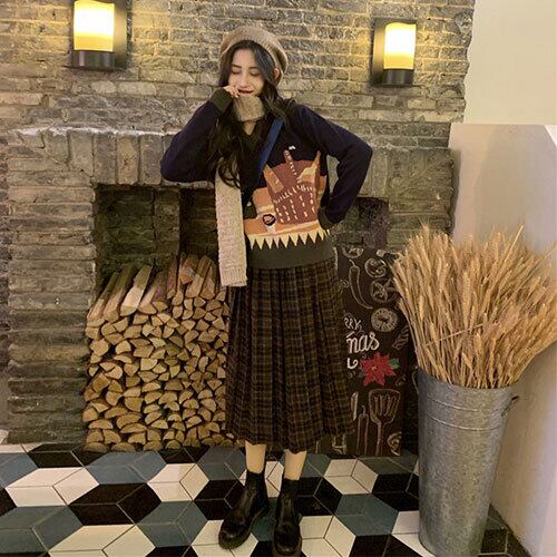 2020 秋 冬 新品 ガールズ 格子縞 プリーツスカート 中・長セクション 小さい新鮮な 学院風 トップス アウター ボトムス レディース 秋 冬 半袖 長袖 きれいめ ロング 可愛い かわいい 膝丈 ひざ丈 20代 30代 40代 マキシ タイト レトロ モダン 白 黒 2023 RB-R5-12-NS-SA-130