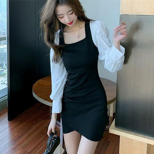 きちんと感をGET 快適である ワンビース 長袖 はしご襟 不規則なスカート ハイウエストスリム 黒と白 トップス アウター ボトムス レディース 秋 冬 半袖 長袖 きれいめ ロング 可愛い かわいい 膝丈 ひざ丈 20代 30代 40代 マキシ タイト レトロ モダン 白 黒 2023 RB-R6-1-NS-SA-008