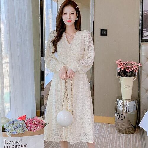 INSスタイル 新品 レース Vネック 長袖 ワンビース スリム sweet系 おしゃれな 百掛け お出かけ トップス アウター ボトムス レディース 秋 冬 半袖 長袖 きれいめ ロング 可愛い かわいい 膝丈 ひざ丈 20代 30代 40代 マキシ タイト レトロ モダン 白 黒 2023 RB-R6-1-NS-SA-009