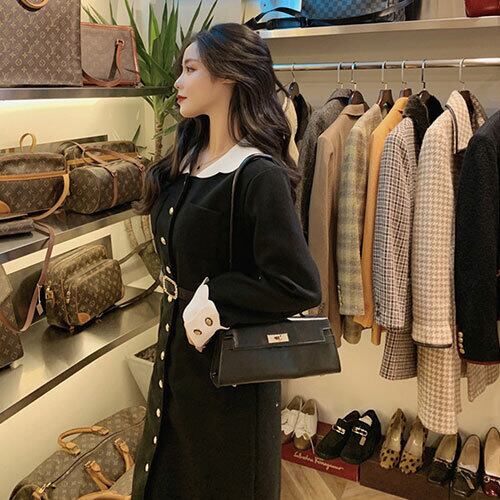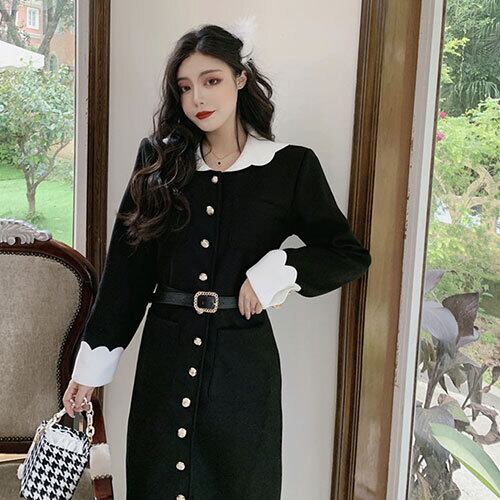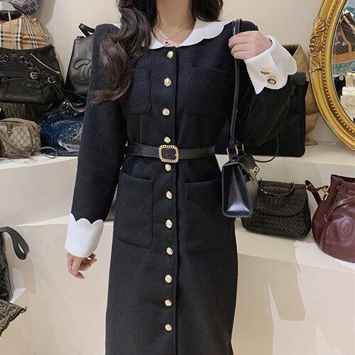 長袖 ウールクロス 単体ボタン レトロ 内部 気質 編み物 ワンビース トップス アウター ボトムス レディース 秋 冬 半袖 長袖 きれいめ ロング 可愛い かわいい 膝丈 ひざ丈 20代 30代 40代 マキシ タイト レトロ モダン 白 黒 2023 RB-R6-1-NS-SA-043