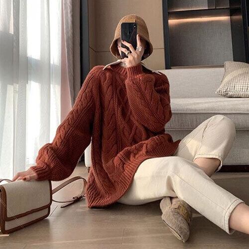 ニットトップス セーター 中長セクション ラウンドネック カジュアル トップス アウター ボトムス レディース 秋 冬 半袖 長袖 きれいめ ロング 可愛い かわいい 膝丈 ひざ丈 20代 30代 40代 マキシ タイト レトロ モダン 白 黒 2023 RB-R6-1-NS-SA-053